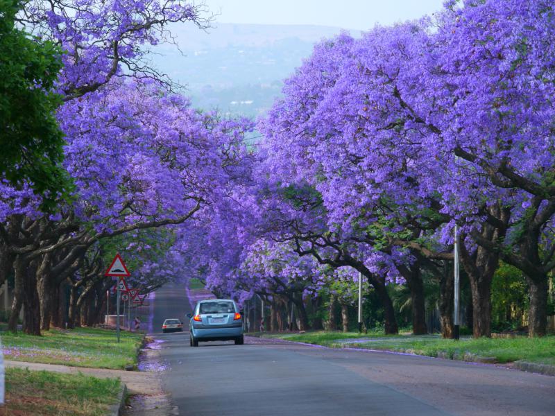 南半球の南部アフリカでは10月頃、春を迎え、町中を紫に染めるジャカランダ並木が見られるシーズンとなります。